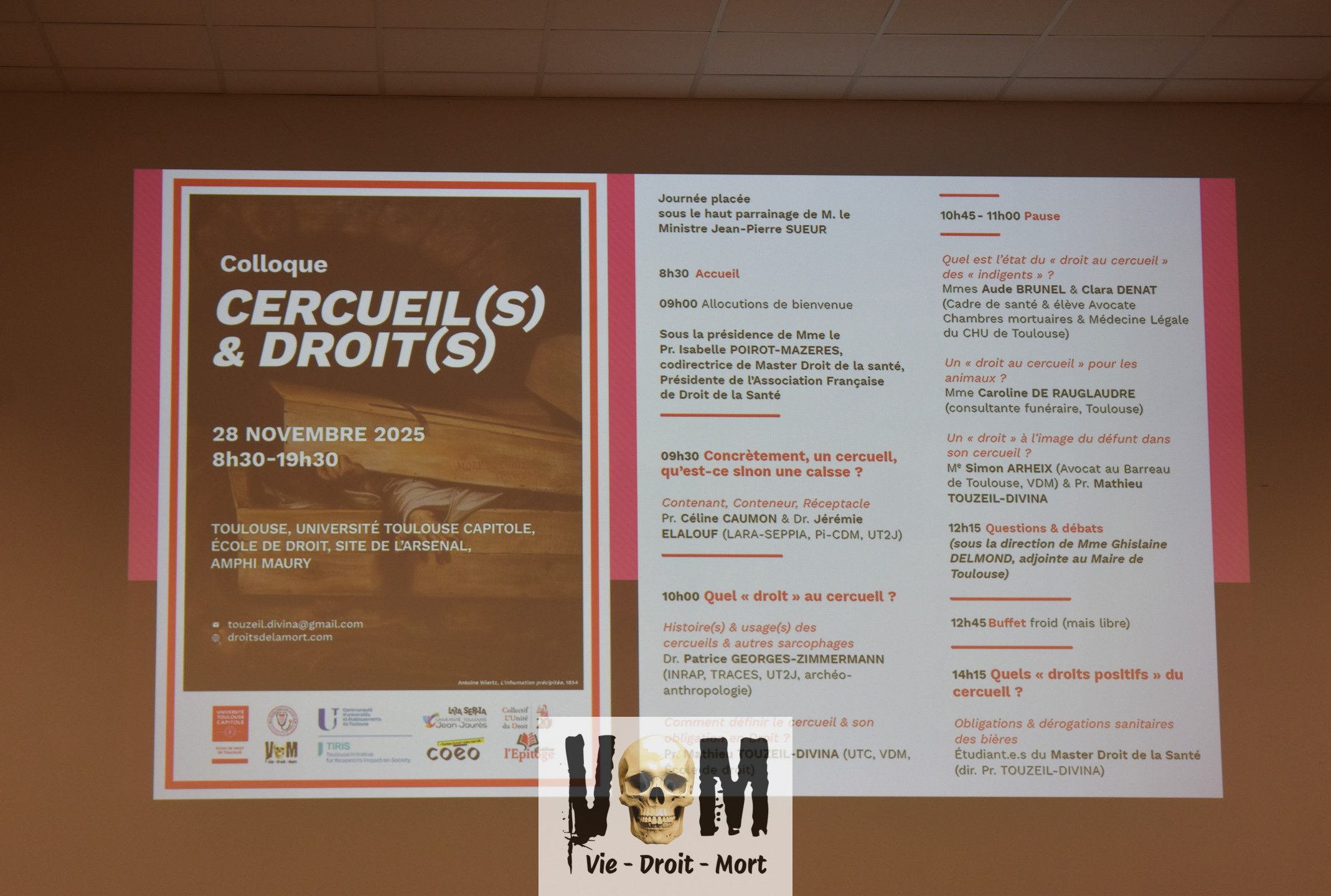 Ce 28 novembre 2025 à Toulouse s’est tenu le 1er colloque organisé par le Master Droit de la Santé de l’Ecole de Droit de l’Université Toulouse Capitole (Pr. Mathieu Touzeil-Divina) avec le soutien des associations Vie-Droit-Mort & Collectif L’Unité du Droit (Editions L’Epitoge) ainsi que du laboratoire Lara Seppia (Université Jean Jaurès) dans le cadre du projet Tiris CO-DE-MO (Commun des mortels).
